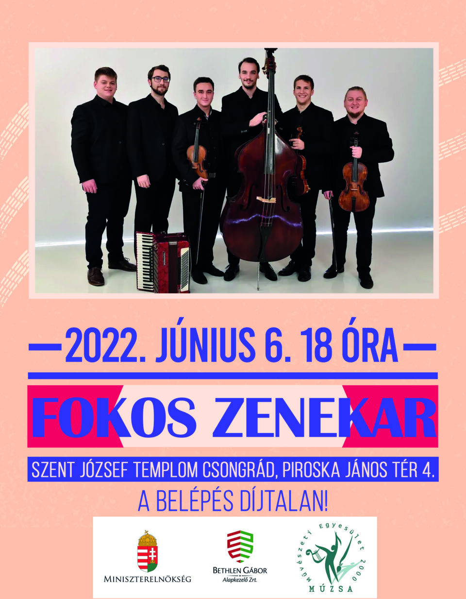 Szeretettel várnak minden érdeklődőt a Fokos Zenekar koncertjére, ahol élő, lendületes népzenei műsorral készülnek a közönségnek.
