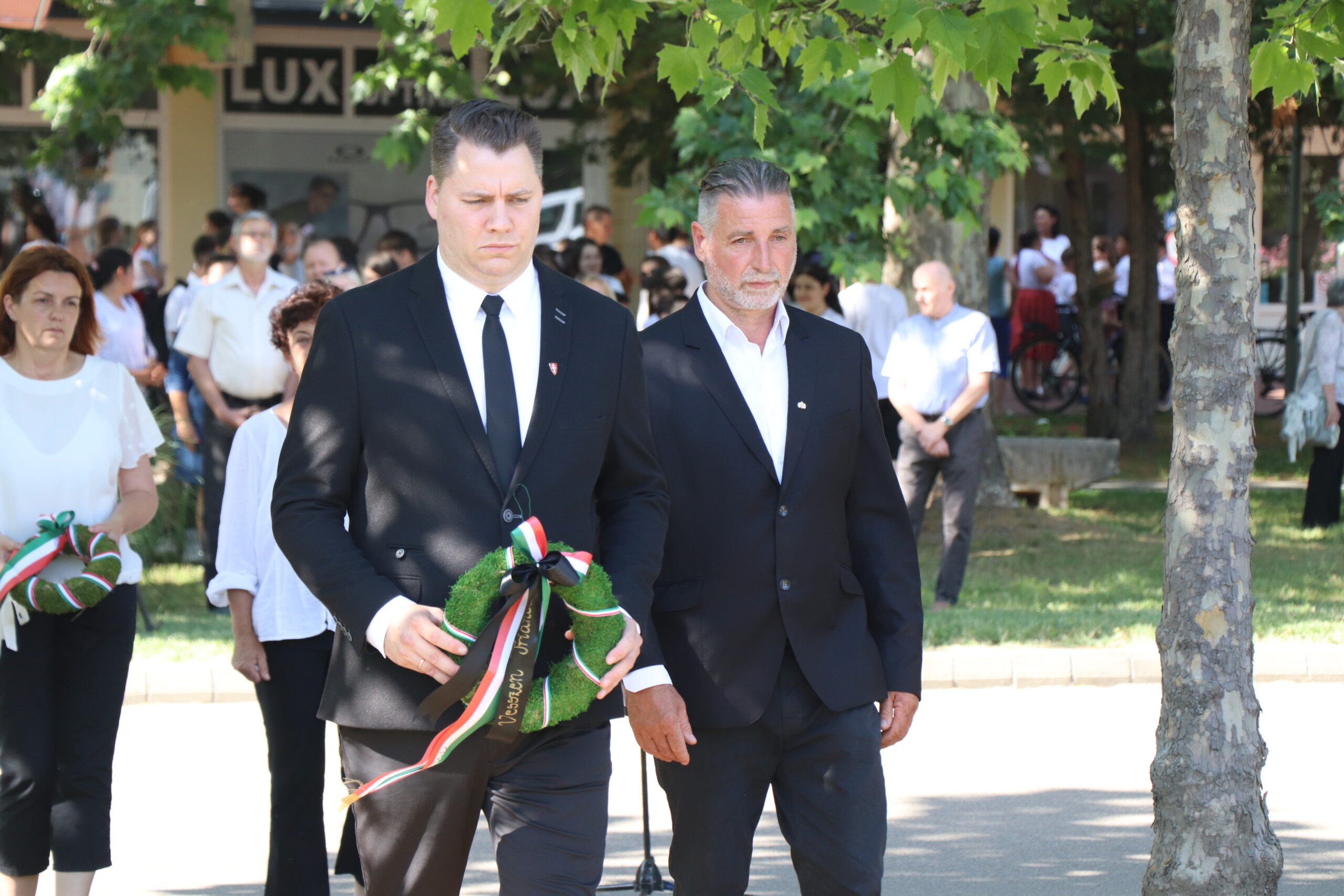 A méltóságteljes eseményen a megemlékezők közösen hajtottak fejet a történelmi veszteség előtt, és helyezték el a tisztelet koszorúit az emlékműnél.