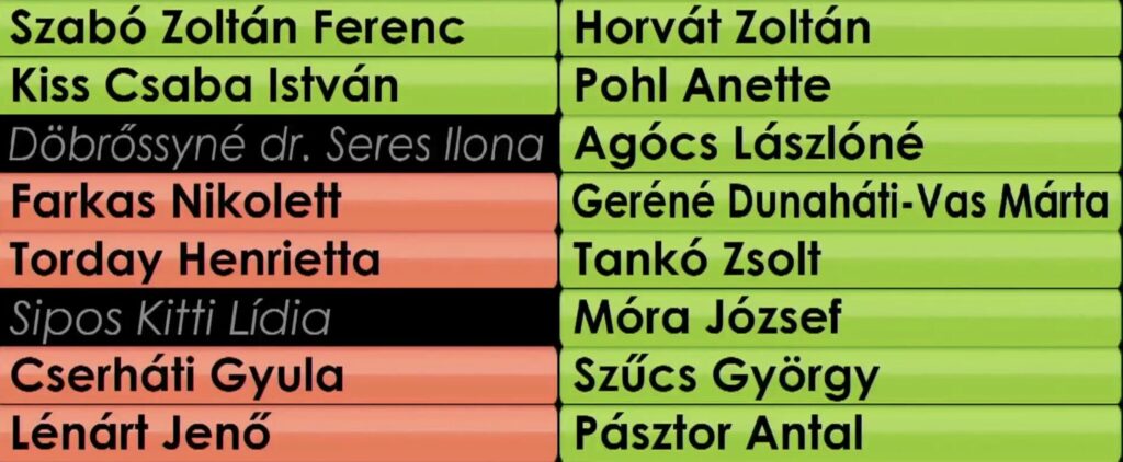 A döntést a baloldali képviselők megszavazták (zöld szín), a Fidesz-KDNP és a Mi Hazánk Mozgalom képviselői nemmel szavaztak (piros szín).