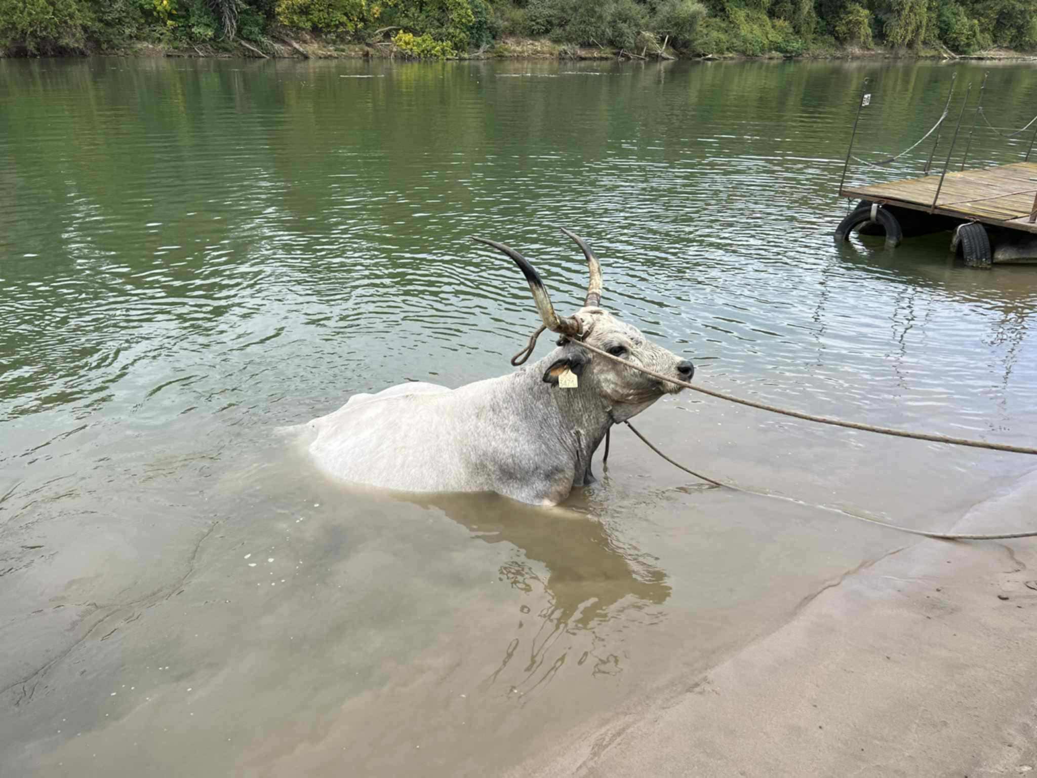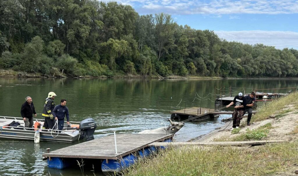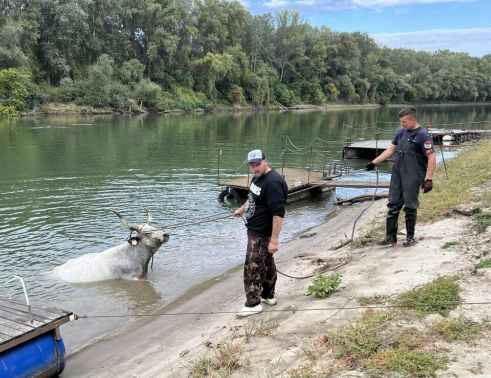 A motorcsónakos mentés rendkívül körültekintően zajlott. A tűzoltók minden lépésükkel arra figyeltek, hogy a szürkemarha sérülés nélkül, nyugodtan kerüljön a túlsó partra. A kötelek és a szakértelem segítségével, folyamatos figyelemmel és precizitással átvitték az állatot, biztosítva, hogy a mentési művelet minden szempontból biztonságos legyen.