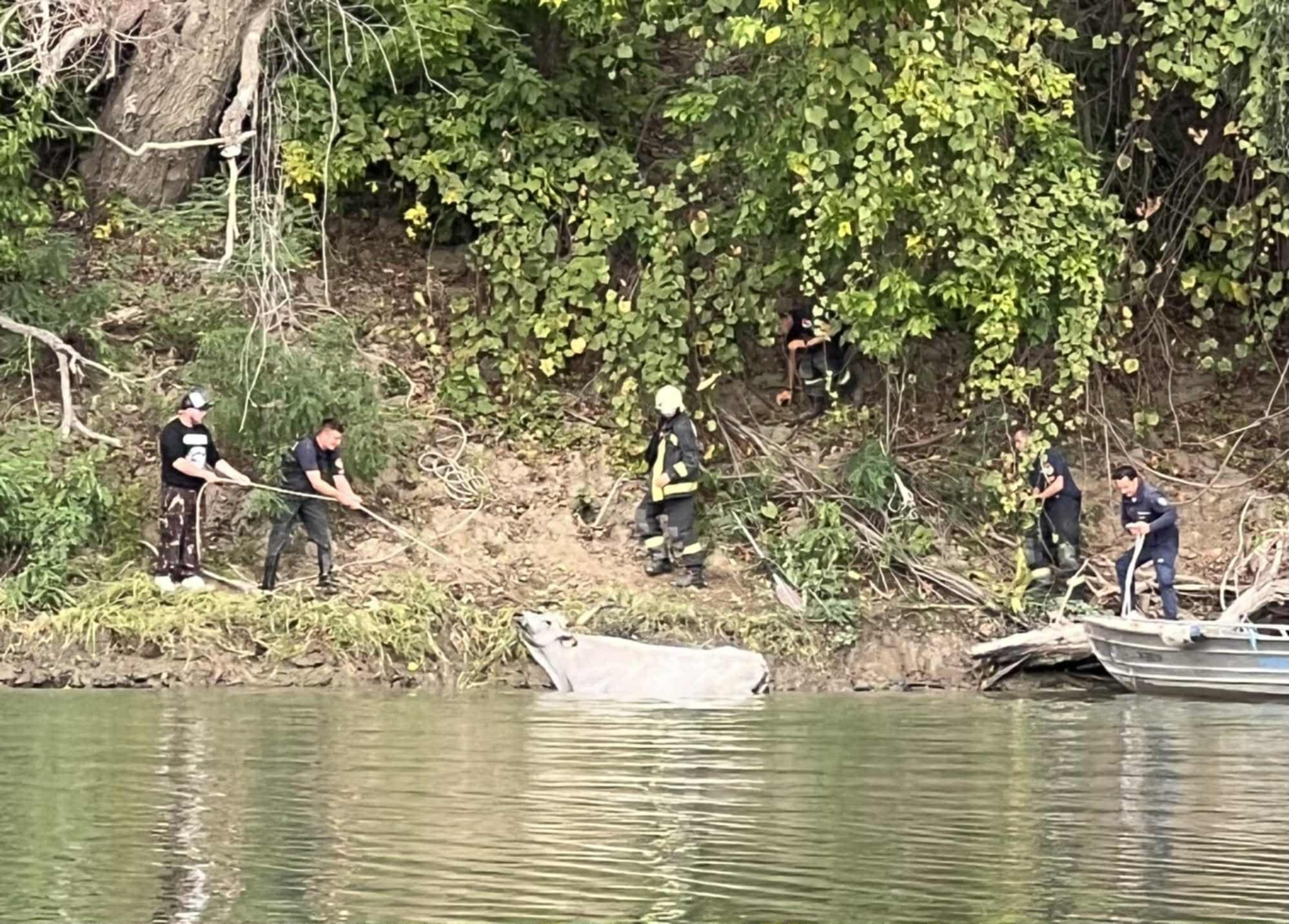 A tűzoltók gyors helyzetfelismerésének köszönhetően a csapat azonnal észlelte a helyzet súlyosságát. A parancsnok rögtön döntött, hogy a legjobb megoldás a túlsó partra juttatni az állatot, ahol a talaj megfelelőbb ahhoz, hogy biztonságosan partra húzzák.