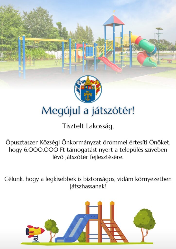 A játszótér felújítása várhatóan még az idei évben megkezdődik, így hamarosan a legkisebbek vehetik birtokba a megújult, szebb és biztonságosabb játékteret.
