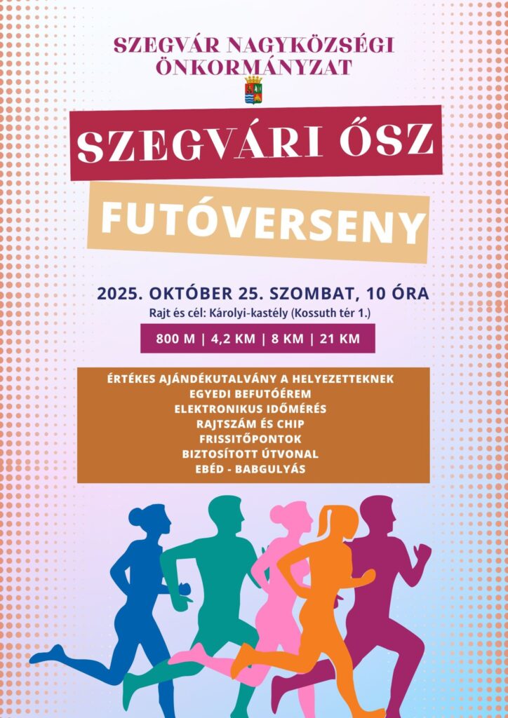 Szegvár idén ősszel is a sport és a közösség jegyében várja a mozgás szerelmeseit: 2025. október 25-én, szombaton 10 órakor rajtol el a Szegvári Ősz Futóverseny, amelynek rajt- és célhelyszíne a hangulatos Károlyi-kastély lesz. Az eseményt Szegvár Nagyközség Önkormányzata és Lőrincz Gábor szervezi, és már most hatalmas az érdeklődés a rendezvény iránt.