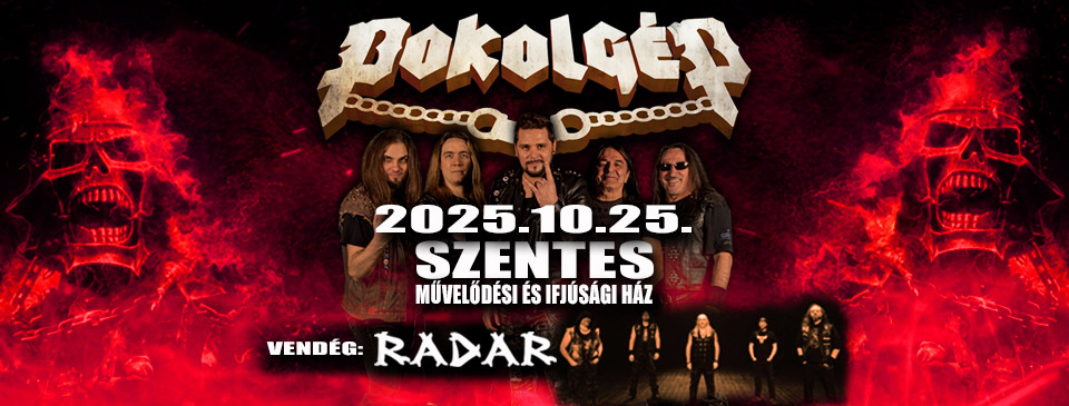 Hatalmas energiabomba várja a rockzene kedvelőit Szentesen! Magyarország egyik legrégebbi és legismertebb heavy metal zenekara, a Pokolgép ad koncertet a városban.
