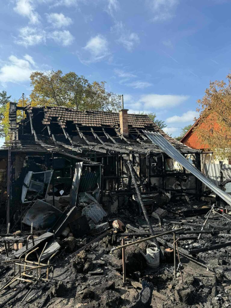 Nem csitul az összefogás a térségben: továbbra is segíthetünk annak a családnak, amelynek otthona október 13-án teljesen leégett. A tűz a műhelyből indult, majd átterjedt a lakóépületre is – mindössze húsz perc alatt semmisült meg egész életük munkája. A ház most lakhatatlan, a bontásra váró falak helyén új otthont kell építeniük.