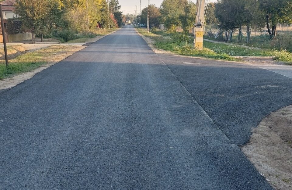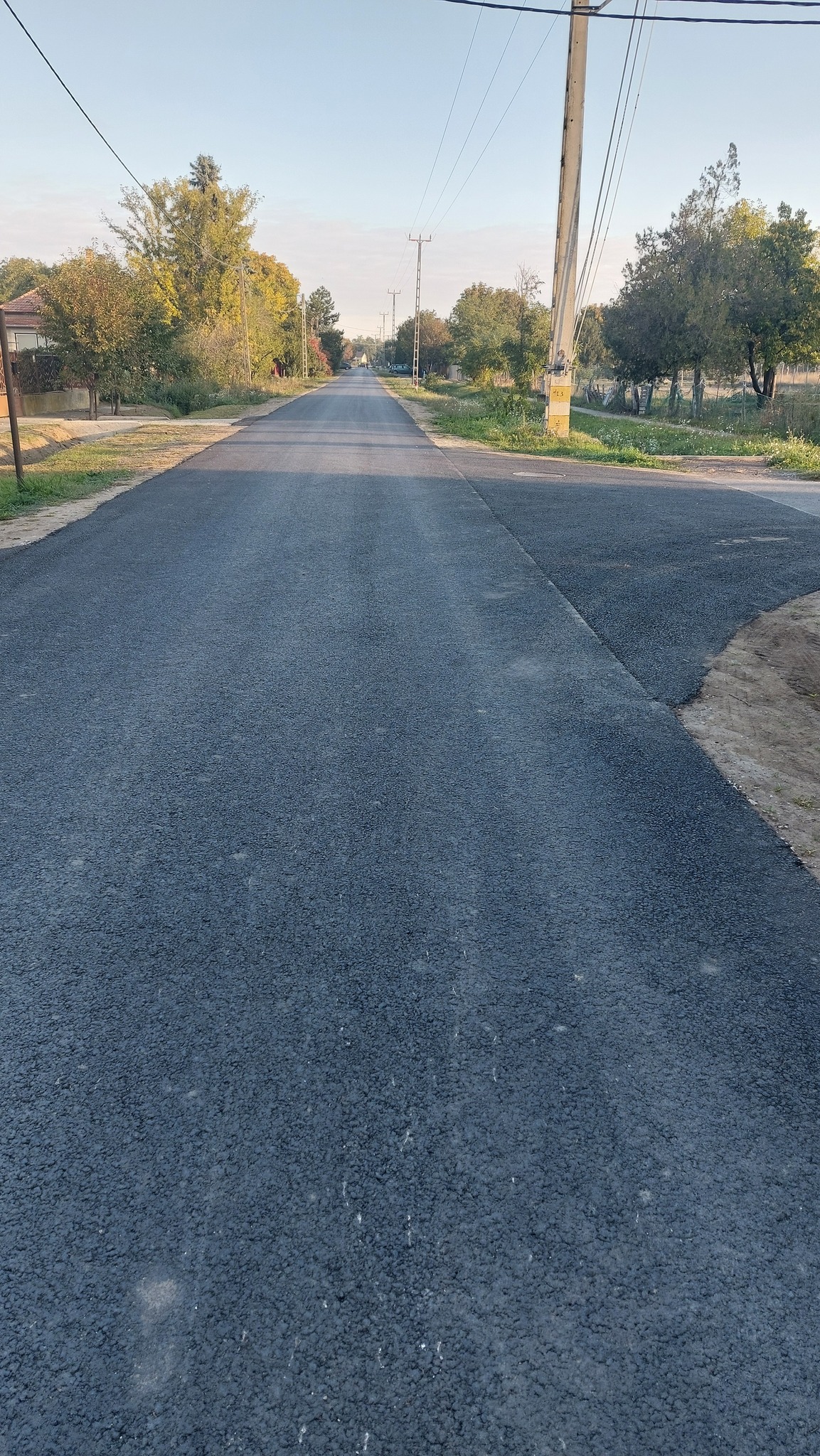 Meglévő aszfaltburkolattal rendelkező útszakasz burkolatának felújítása 6 cm aszfalt kopóréteg használatával történt.
