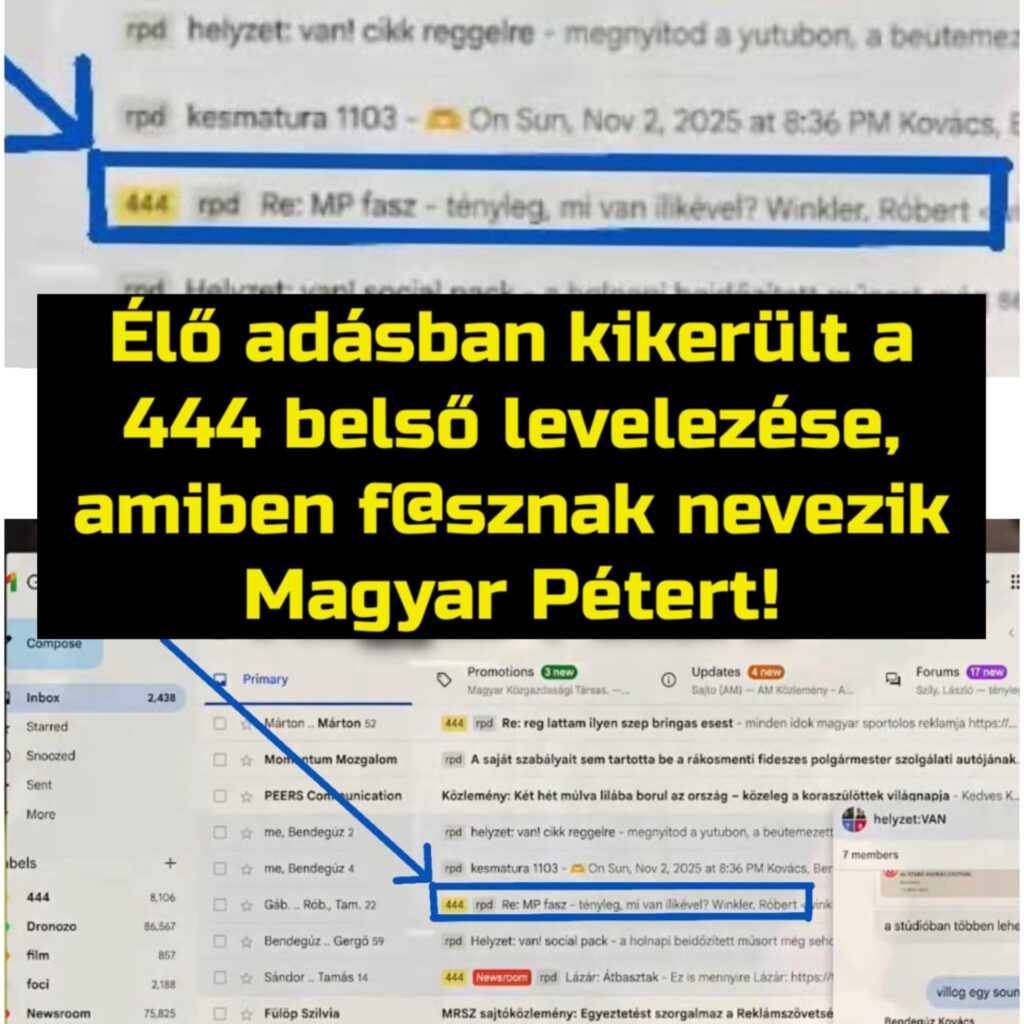 Milyen kár, hogy az internet nem felejt! A 444 élő adásában véletlenül bemutatták a független és objektív szerkesztőség belső levelezését: eszerint jól pörög az MP fasz tárggyal ellátott emailváltás, Winkler Róbert pedig Magyar Péter barátnője iránt érdeklődött.