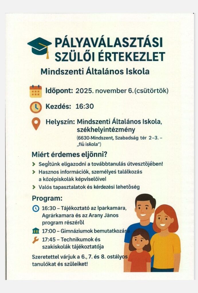 Segítség a továbbtanuláshoz: pályaválasztási szülői értekezlet lesz Mindszenten