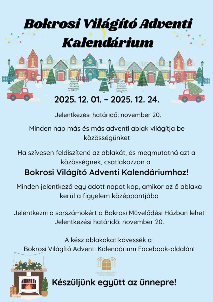 Csongrád-Bokroson idén is életre kel az advent varázsa – december 1. és 24. között minden este más és más ház ablaka világítja be a közösséget a Bokrosi Világító Adventi Kalendárium keretében. A meghitt kezdeményezés célja, hogy a helyiek együtt készüljenek az ünnepre, és közösen teremtsenek karácsonyi hangulatot a városrészben.
