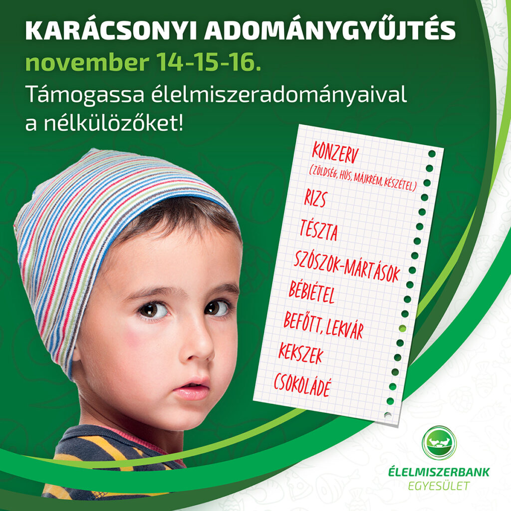 Az elmúlt 20 év gyűjtéseihez hasonlóan idén is mindenkit arra kérünk, hogy a hétvégi bevásárláskor a nélkülözők számára is tegyenek egy tetszőleges tartós élelmiszert a kosarukba, amit a kasszák utáni gyűjtőpontokon adhatnak le. Pénteken 15:00-20:00 óra között, szombaton 8:00-19:00 óra között, vasárnap pedig 8:00-18:00 óra között lehet felajánlást tenni.