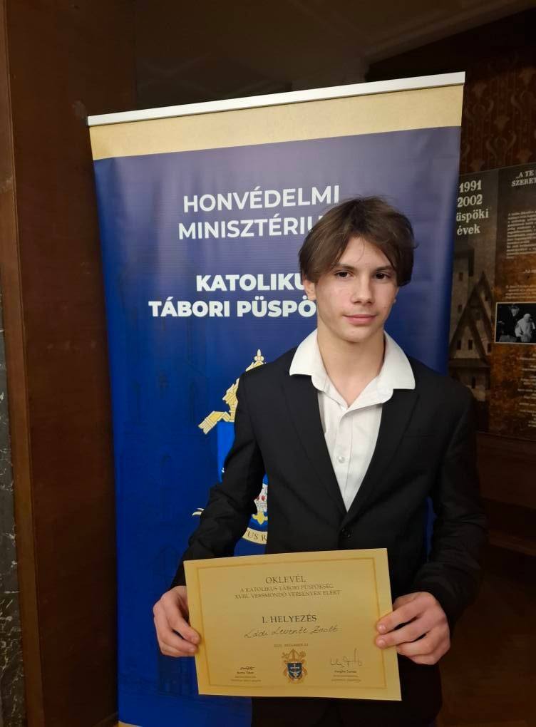 A Katolikus Tábori Püspökség immár tizennyolcadik alkalommal rendezte meg év végi versmondó versenyét, ahol az ország különböző pontjairól érkező katonák gyermekei mérhették össze tehetségüket. A rangos megmérettetés idei győztese a szentesi Horváth Mihály Gimnázium 9.D osztályának dráma tagozatos tanulója, Ládi Levente Zsolt lett.