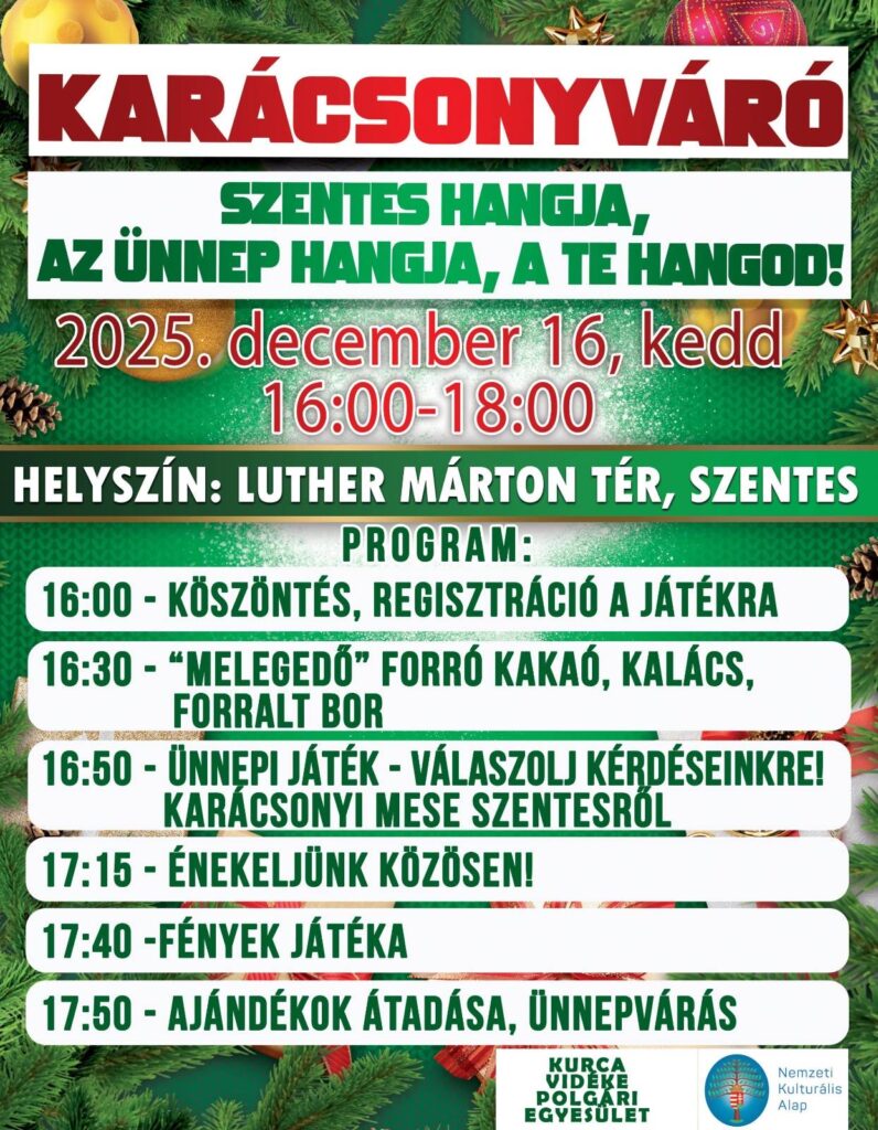 December 16-án 16 órától először rendezik meg Szentesen a karácsonyváró ünnepséget, melynek a Luther tér ad otthont. A rendezvény célja, hogy közösen hangolódjunk az ünnepekre és a város apraja nagyja együtt élvezhesse a meghitt adventi pillanatokat.