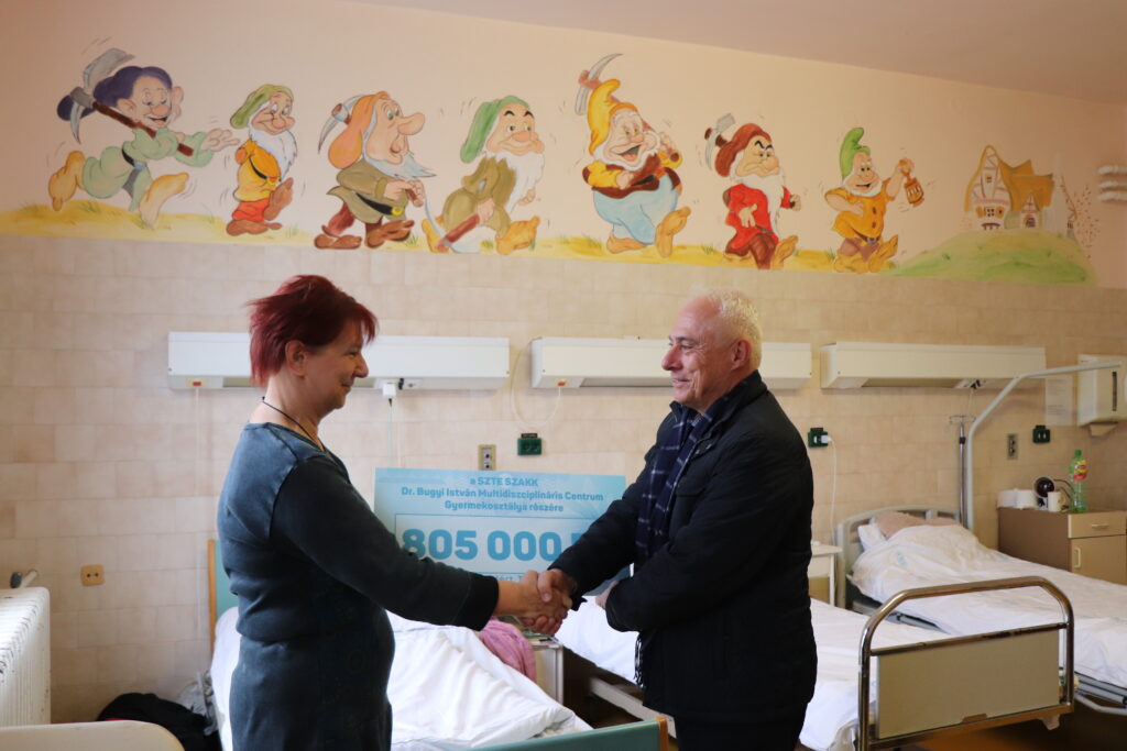 Dr. Tóth Edit, a csecsemő- és gyermekosztály osztályvezető főorvosa elmondta: jelenleg nincs szükség új műszerek beszerzésére, az osztály technikai ellátottsága megfelelő. Ezért az adományt egy kórterem teljes felújítására, komfortosítására és arculatának megújítására fordítják. Hozzátette, hogy a felújítás során megőrzik azokat az értékes falrajzokat is, amelyek korábbi felajánlások révén készültek, és fontos részei a gyermekbarát környezetnek.