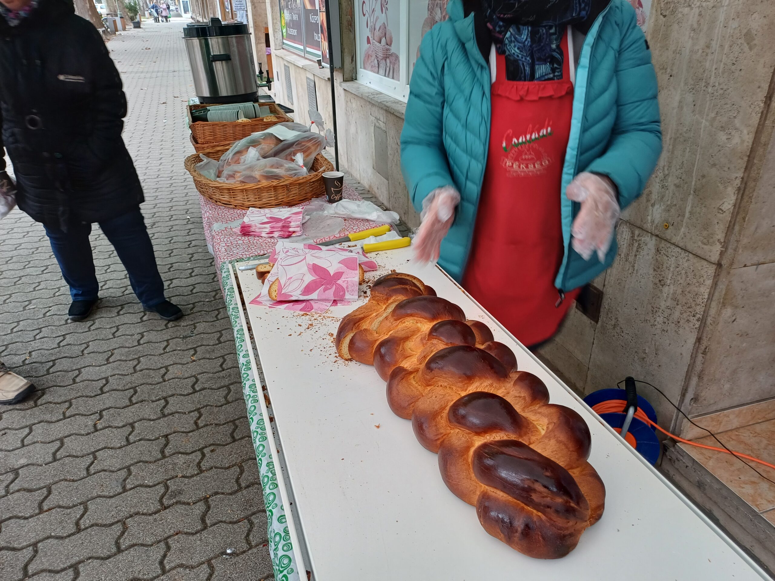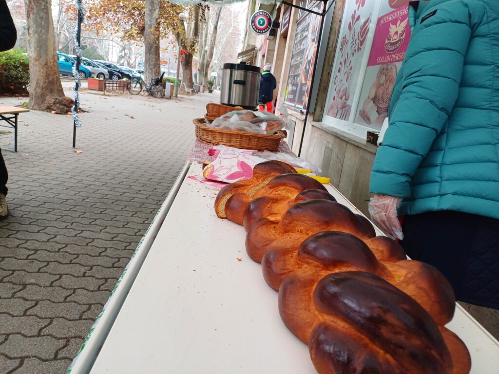 Az ünnepi figyelmesség azonban itt még nem ért véget. Karácsony előtt néhány nappal a pékség a Fő utcán sétálókra is gondolt, hiszen négy darab, egyenként 120 centiméteres kalácsot, pogácsát és meleg teát osztottak szét az arra járók között. Sokak megálltak egy rövid beszélgetésre még azok is, akik eredetileg siettek valahová. A járókelők meghatottan, kedves szavakkal köszönték meg ezt az őszinte, emberi gesztust, amely igazi ünnepi hangulatot teremtett a pékség előtt