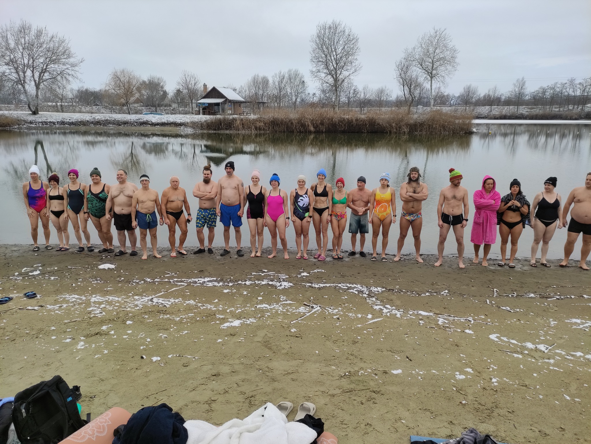– fogalmazott Illés Péter közvetlenül a csobbanás után. Hozzátette, hogy néhány nappal korábban a Körös-torokban is megmártóztak, és kifejezetten jó dolognak tartja a jeges vízben való fürdést.