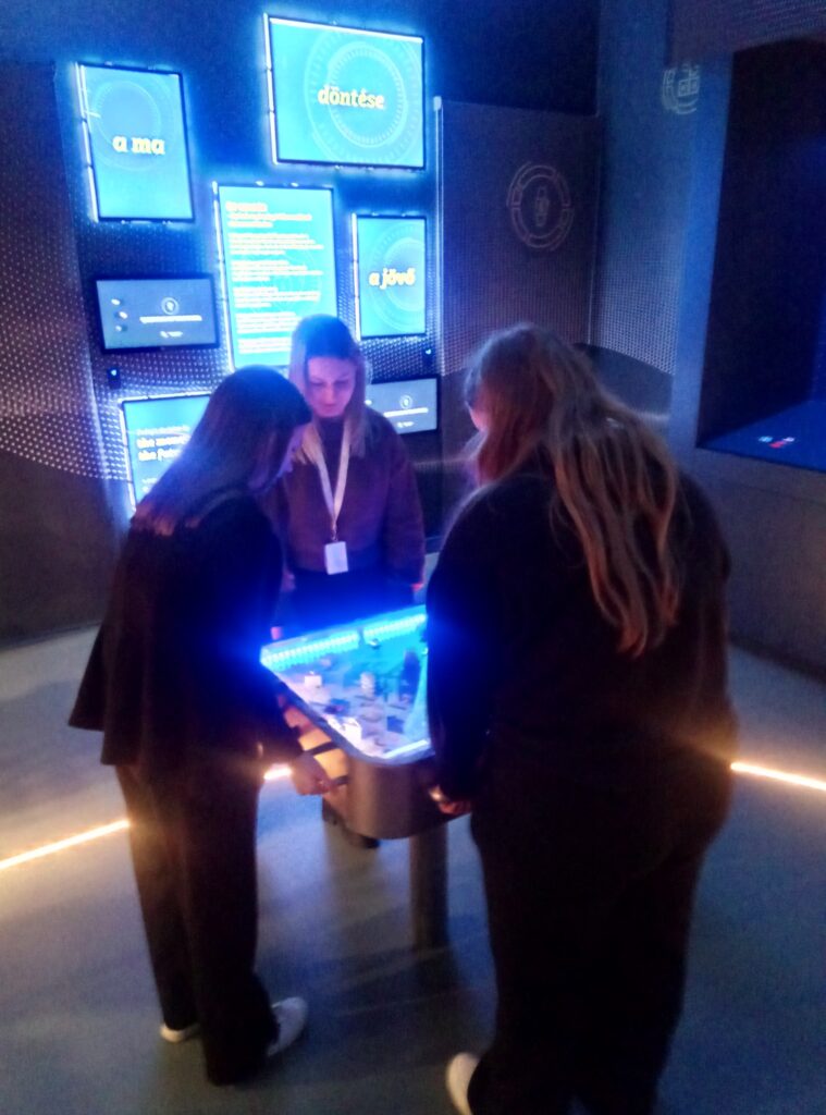 A csoport első állomása a Pénzmúzeum volt, ahol a tanulók a pénz történetével, szerepével és működésével ismerkedhettek meg. „A kiállítás modern és látványos formában mutatta be a pénz világát, amit rengeteg interaktív elem tett még izgalmasabbá” – mesélte Regina. A diákok egy saját kártyán gyűjthettek virtuális pénzt a játékos feladatok során, amelyeket a program végén kuponokra válthattak.