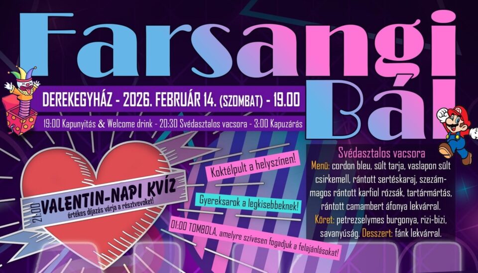 Igazi időutazásra és farsangi mulatságra készülhetnek a derekegyháziak és a környékbeliek február közepén. 2026. február 14-én, szombaton 19 órától farsangi bált rendeznek Derekegyházán, ahol a 80-as és 90-es évek nosztalgikus világa, a jókedv és a közös ünneplés kerül a középpontba.