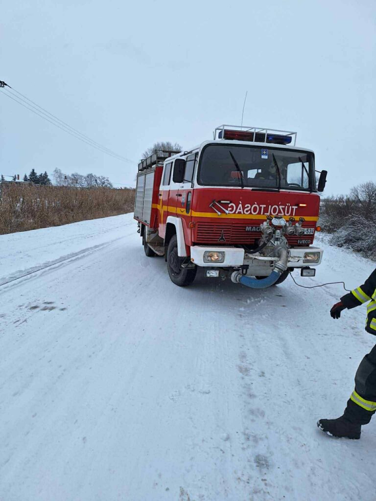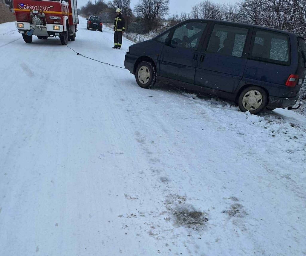 Az első jelzés szerint egy személygépkocsi lecsúszott az úttestről és az árokban kötött ki. A járműben csak a sofőr tartózkodott, aki szerencsére nem sérült meg. A műszaki mentést a Fábiánsebestyéni Önkéntes Tűzoltó Egyesület (ÖTE/1) végezte el, sikeresen visszavontatva az autót az útra.