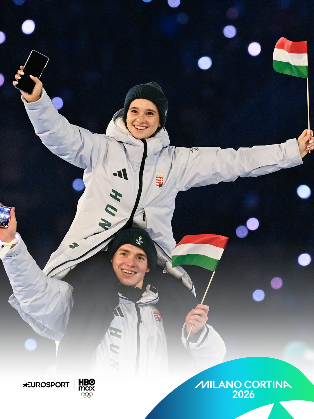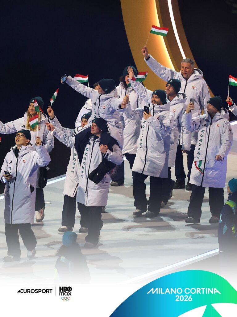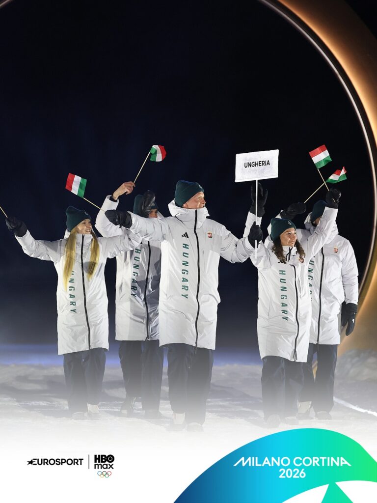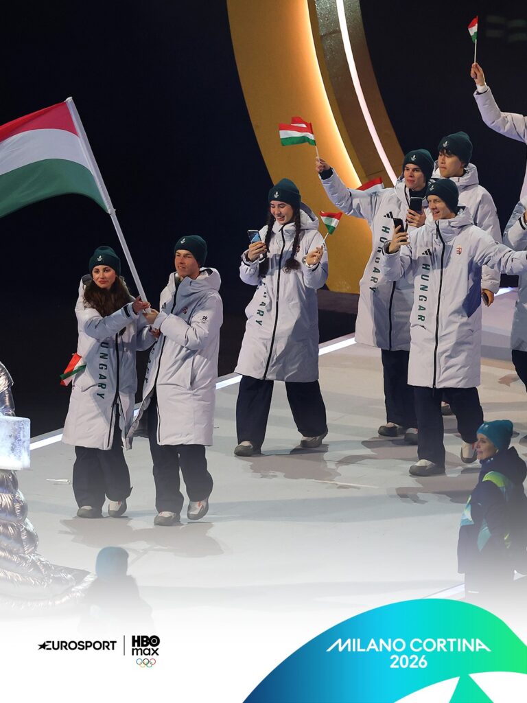 A San Siro futballstadionba 86. bevonuló küldöttségként a magyarok érkeztek, a nemzeti zászlót két rövidpályás gyorskorcsolyázó, Nógrádi Bence és Somodi Maja vitte. A magyarok fekete nadrágot, hosszú fehér kabátot és mélyzöld sapkát viseltek.