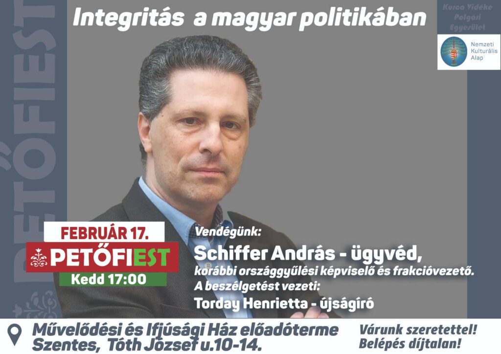 Integritás mint feddhetetlenség, erkölcsi tartás és az elvekhez való hűség összessége. Manapság ritka szó a magyar közéletben. Éppen ezért bír különös jelentőséggel az a beszélgetés, amelyre február 17-én kerül sor Szentesen, az Ifjúsági házban.