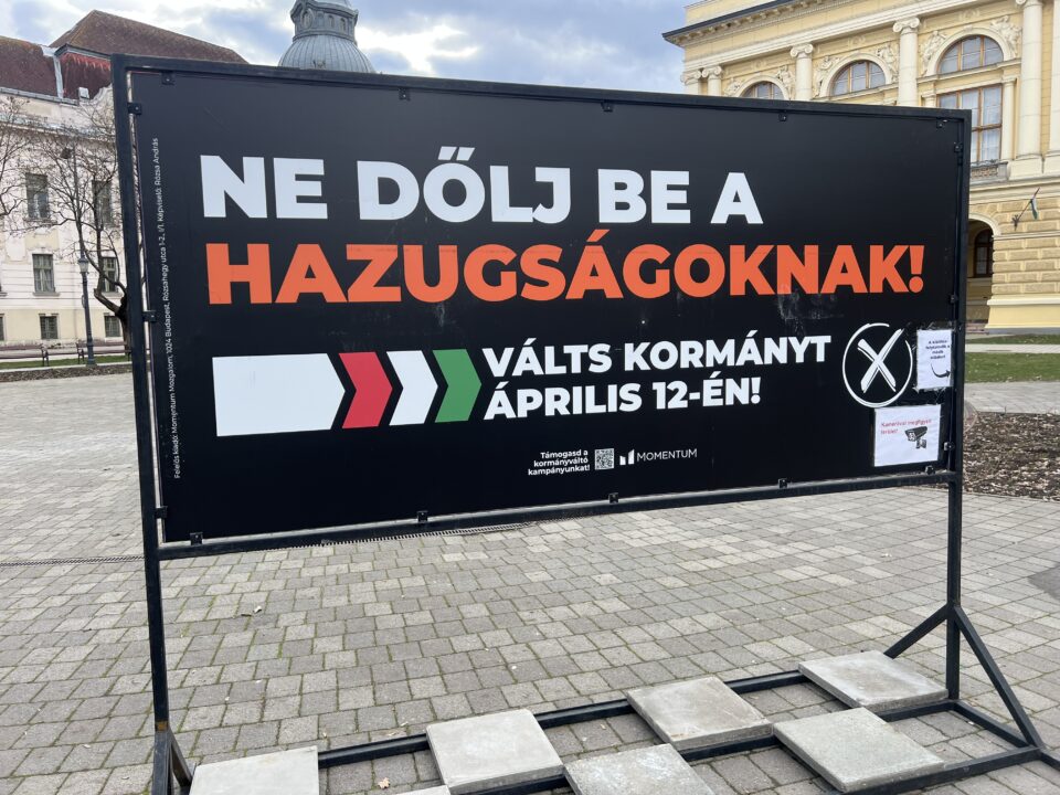 Szentesen is megjelentek a Fideszt lejárató plakátok, amiket a Momentum helyezett ki. Ez nem véletlen, hiszen a választókerületben egy momentumos jelölt indul tiszás álarcot húzva. A Tisza-Momentum megegyezés alapján ezt a választókerületet kapta a lila baloldali párt, míg más helyen a kék balosok indulnak és a Momentum lépett vissza.