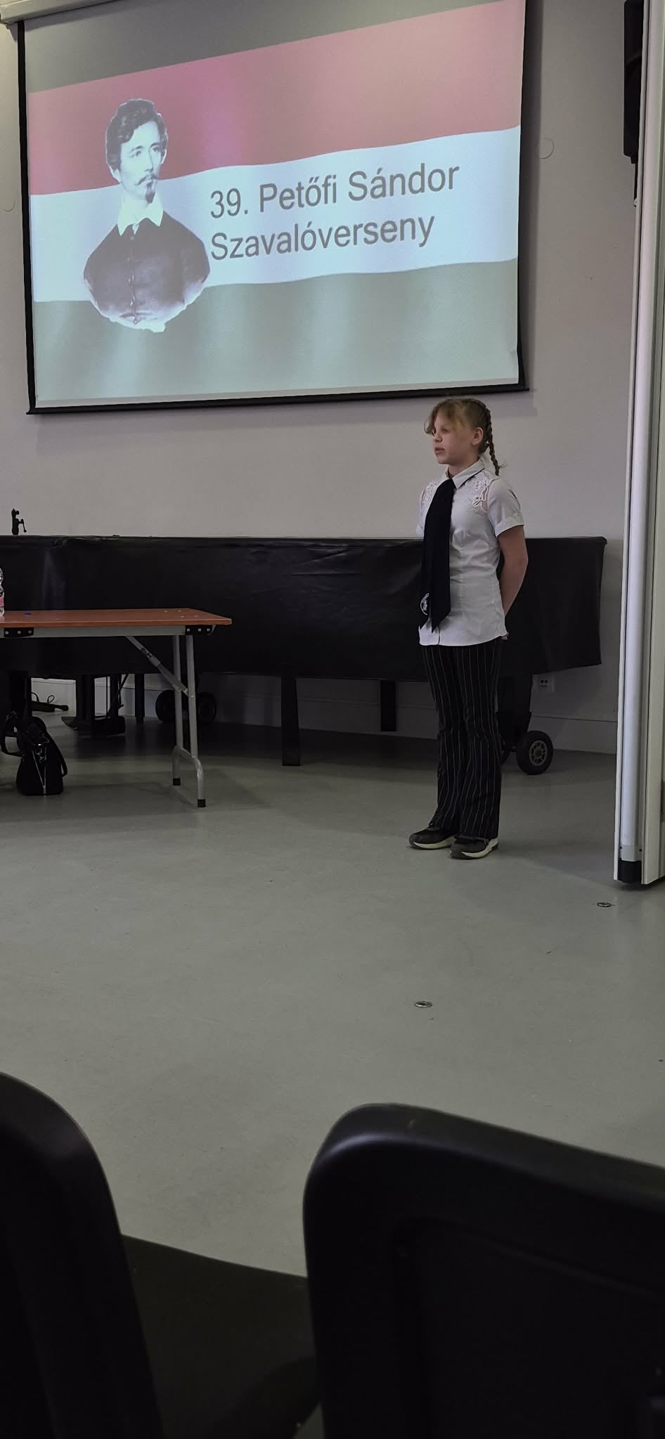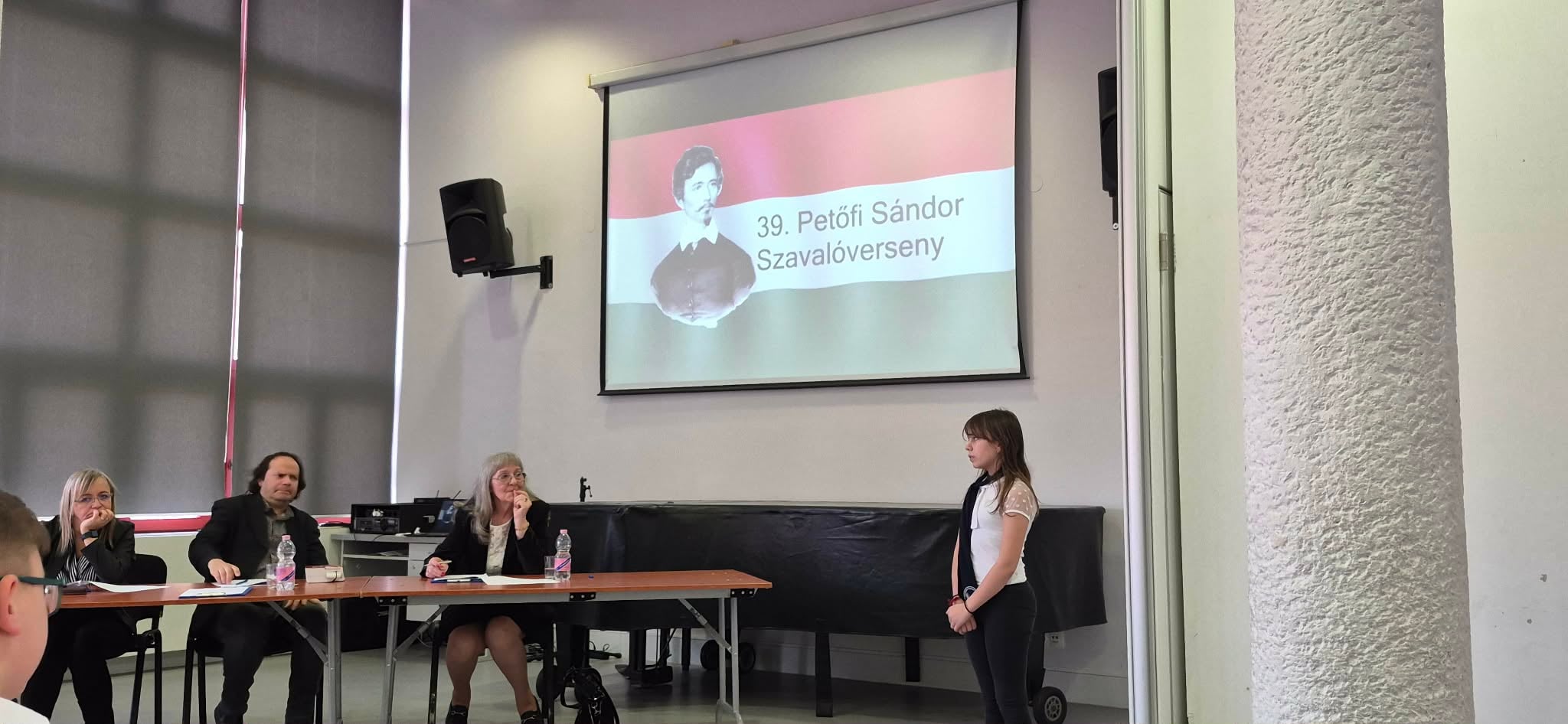 Az intézményből a 4. osztályból Tóth Flóra és Nagy Kíra, a 6. osztályból Ferenczi Jázmin Gabriella, Kristó Réka Flóra és Koncsek Bálint Máté, a 7.c osztályból Koós Nimród, valamint a 8.a osztályból Kovács Dorka Mónika lépett színpadra. A diákok nagy lelkesedéssel és felkészülten adták elő egy-egy Petőfi-verset, valamint egy szabadon választott költeményt.
