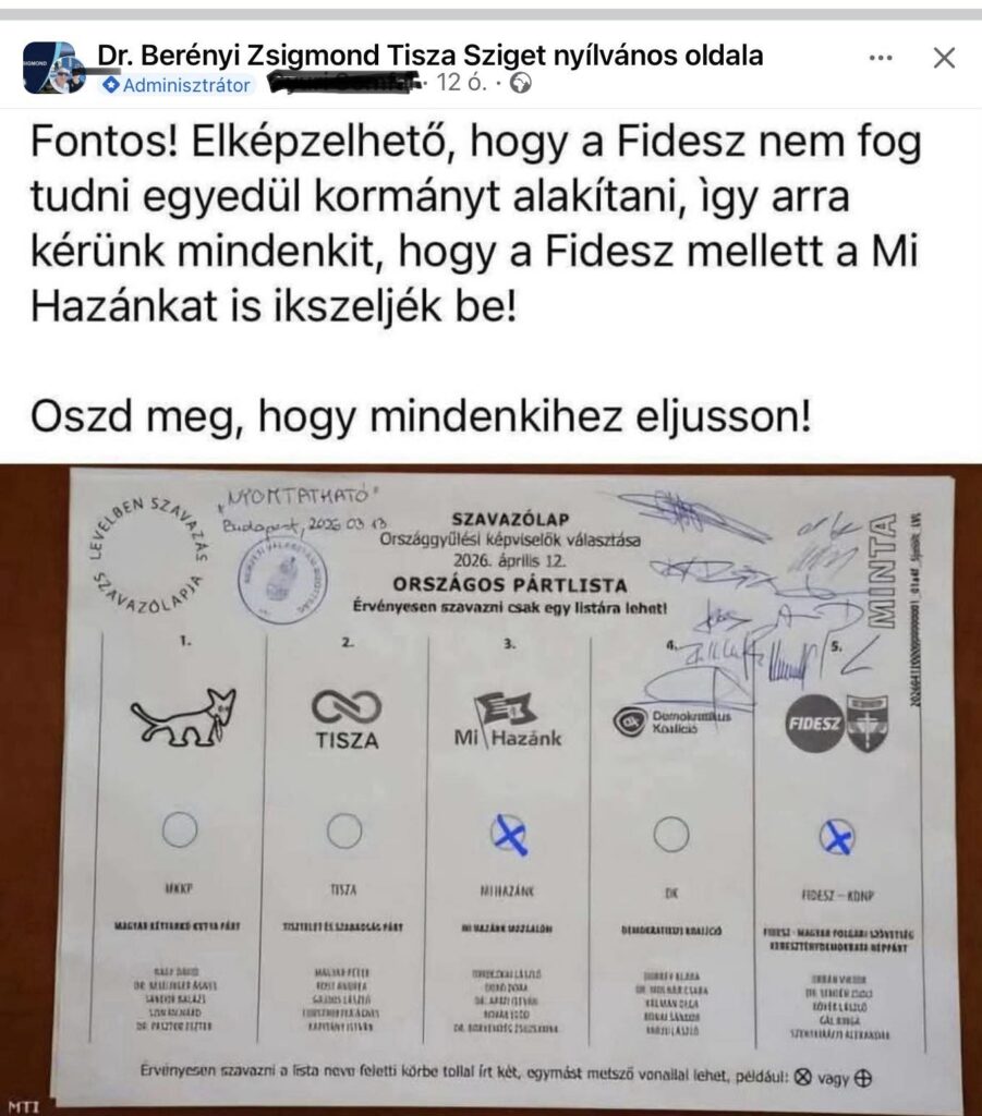A Tűzfalcsoport közlése szerint százával terjed az a dezinformációs kampány, amelynek keretében a Tisza Párt hívei a Fidesz szavazóit kívánják megtéveszteni. A portál állítása szerint a cél az, hogy a választók a szavazólapon egyszerre jelöljék a Fideszt és a Mi Hazánkot, ezzel biztosítva „legalább egy koalíciós többséget a jelenlegi kormánypártok számára.”