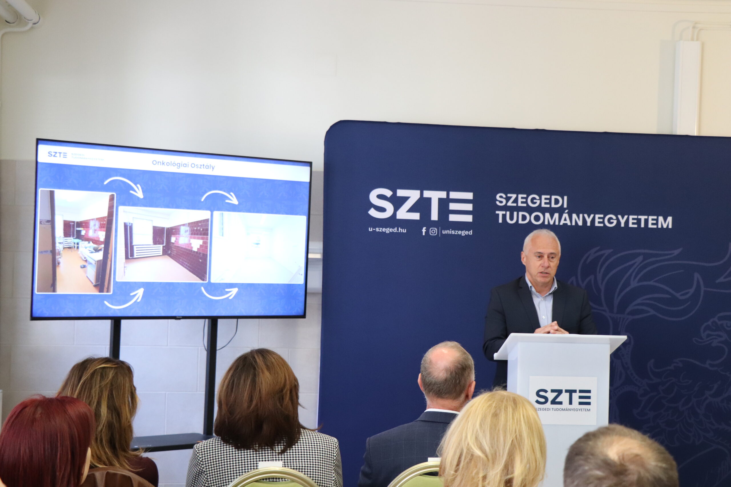 Oláh Judit, az SZTE Onkológiai Klinikájának vezetője kiemelte, a szentesi onkológiai osztály felújításának köszönhetően javult a betegellátás színvonala, a páciensek és az egészségügyi dolgozók komfortérzete. A korszerűsítés lehetővé teszi, hogy azok a páciensek, akik már nem kaphatnak aktív onkológiai kezelést, a régióban hiánypótló palliatív ellátásban részesülhessenek.