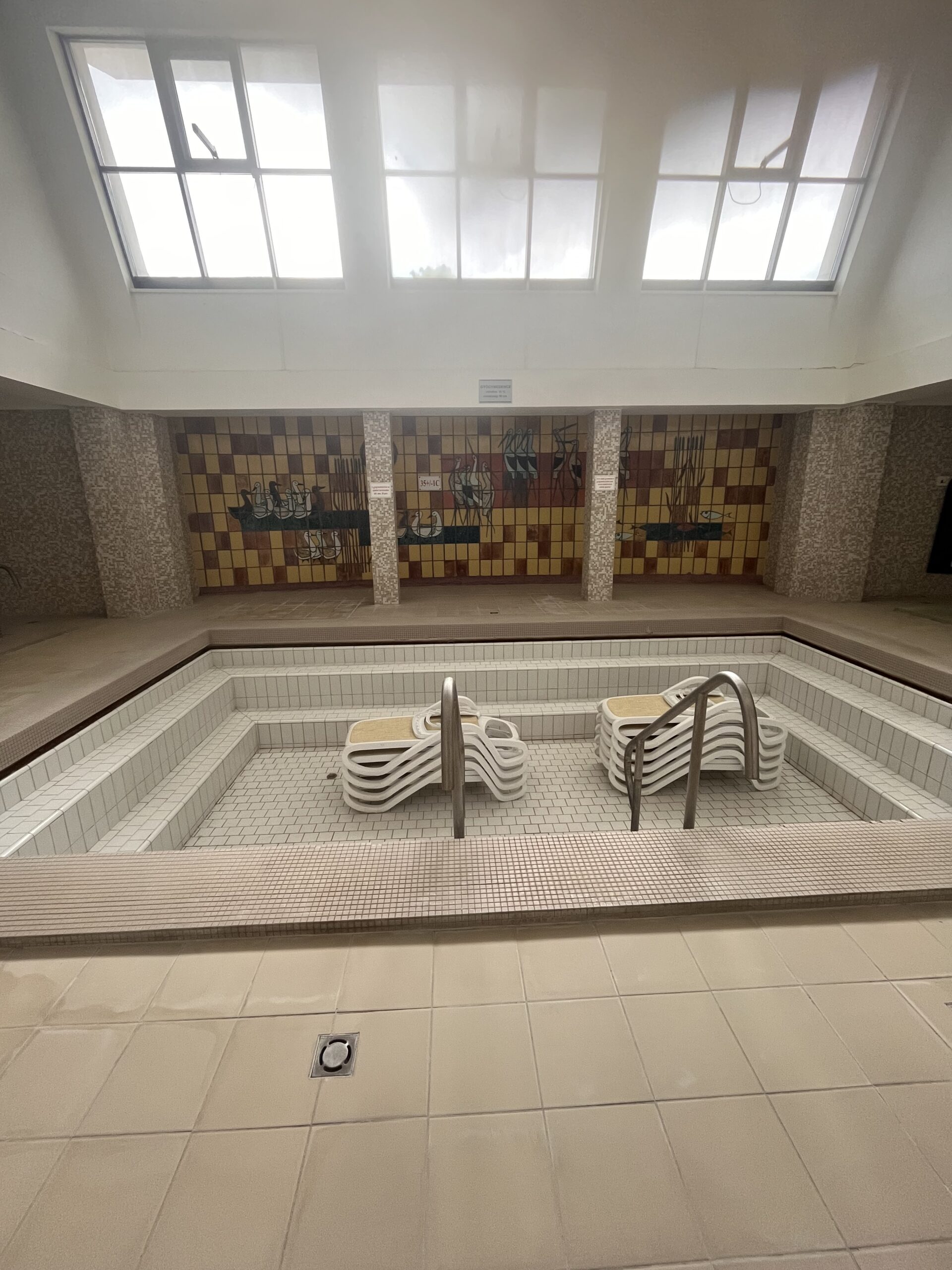 A fejlesztések a beltéri terek mellett az udvaron is folytatódnak. A fürdő teljes területén karbantartási munkák zajlanak, valamint az előtér fölé napvitorla kerül felszerelésre.