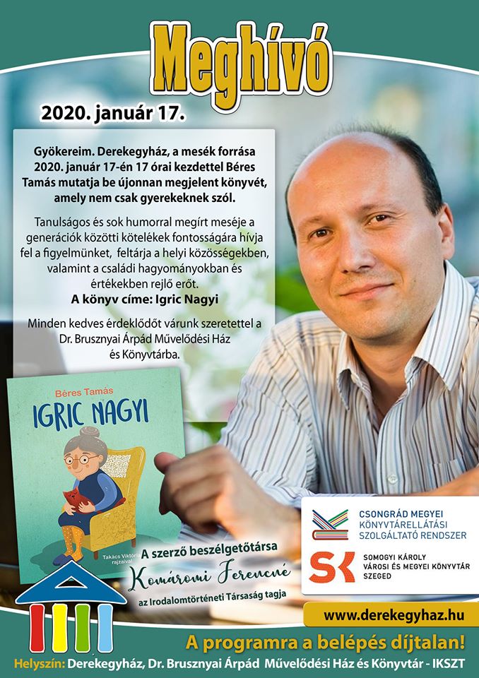Béres Tamás: Igric nagyi – könyvbemutató 00 Nap 00 óra 00 perc 00 másodperc dátum nov 14 2025 időpont 17:00 - 19:00 helyszín Derekegyház Megosztás Térségünk Jubileumi kiállítás nyílt Csongrádon az 50 éves Művésztelep alkotásaibólcs3-szerkeszto2025.11.14.2025.11.14.2025.11.14.2025.11.14.0Aszfaltozási munkák kezdődtek a szentesi mentőállomáson, a parkolóhelyeket ideiglenesen a mentőautók használjákcs3-szerkeszto2025.11.14.2025.11.14.0Megérte a kemény munka: a mindszenti Ugrai Panna bekerült a rövidpályás úszó Európa-bajnokságra utazó magyar válogatott keretébecs3-szerkeszto2025.11.14.2025.11.13.2025.11.14.2025.11.13.0A csongrádi Sághy diákjai a szó erejével ünnepelték a magyar nyelv napjátcs3-szerkeszto2025.11.14.2025.11.13.2025.11.14.2025.11.13.0Szabó István: méltó elismerést kapott Szeged és a vármegye egyik legfontosabb jelképecs3-szerkeszto2025.11.13.2025.11.13.2025.11.13.2025.11.13.0Elismerte a tiszás szennyoldal, hogy B. Eszternek köze van hozzájukcs3-szerkeszto2025.11.13.2025.11.14.2025.11.13.2025.11.14.0Kiderült, mikor lesz Derekegyház elhunyt háziorvosának búcsúztatásacs3-szerkeszto2025.11.13.2025.11.13.2025.11.13.2025.11.13.0November 20-án szünetel az ügyfélfogadás a mindszenti kormányablakbancs3-szerkeszto2025.11.13.2025.11.13.2025.11.13.2025.11.13.0Varázslatos Márton-nap a Kossuth téren, ahol Csongrád fényei egybefonódtakcs3-szerkeszto2025.11.13.2025.11.13.2025.11.13.2025.11.13.0Szakmák és életutak testközelből – nagyszabású pályaorientációs nap volt a szentesi HMG-ben + GALÉRIA!cs3-szerkeszto2025.11.13.2025.11.12.2025.11.13.2025.11.12.0